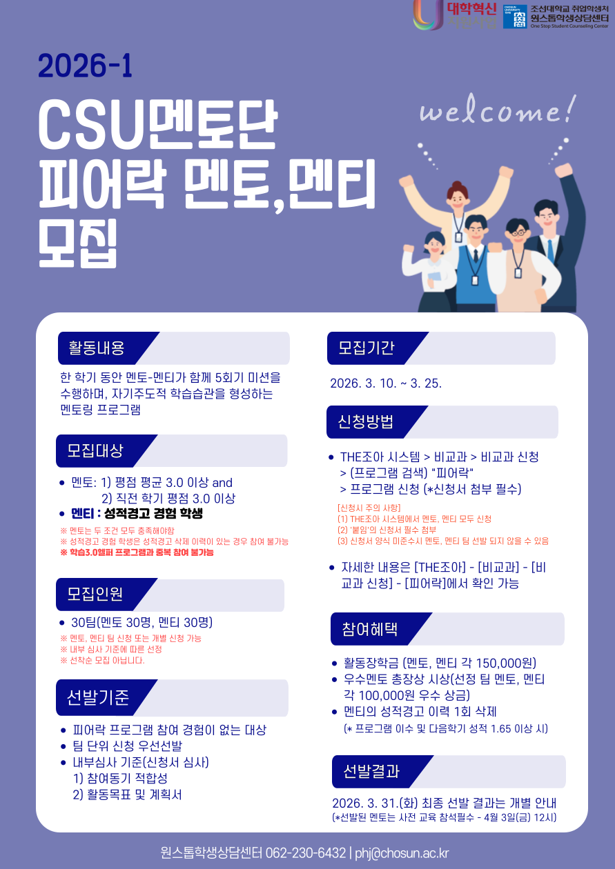 멘토링 프로그램을 운영합니다. 관심 있는 학생들의 많은 참여 바랍니다.