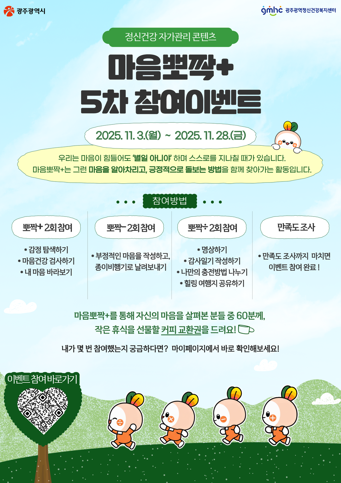 광주광역정신겅강복지센터에서 진행중인 마음뽀착+ 행사를 알려드립니다.